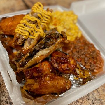Pictured above: Ultimate Munchie box: Philly style rolls, SmackN sauce wings, MackNn cheesE and Cowboy beans